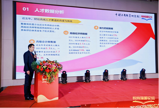 2025年12月12日,由中国教育电视台主办的《教育强国论坛暨2025年中国教育盛典》隆重举行。本次盛典聚焦教育高质量发展核心议题,汇聚业内权威专家、知名教育机构代表共话行业未来。中财上智教育研究院院长、国家人社部高级考评员蒋大冬出席论坛,并发表《职称改革定方向 财经人才立潮头——我国财经高级人才培养及改革路径》主旨发言,深度剖析新时代财经高级人才培养的机遇与挑战。