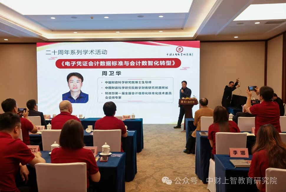 研讨会由中央广播电视总台温鑫主持,中财上智教育研究院院长、国家人社部财务管理高级考评员、内督员蒋大冬致欢迎词,对各位嘉宾的到来表示欢迎,阐述了举办此次研讨会的重要意义与殷切期望。十一届全国人大财经委员会副主任,著名经济学家,中国计量经济学开拓者,九三学社十二届中央副主席,中央财经大学统计学院创院院长贺铿带来“AI背景下,财经人才培养问题之我见”的分享,从宏观视角剖析目前财经人才培养面临的挑战与机遇,为后续研讨奠定了高屋建瓴的理论基础。国务院参事室特约研究员、中国劳动学会会长、人力资源和社会保障部原党组副书记、常务副部长杨志明围绕“数智赋能财经人才高质量发展”展开论述,强调在数智化浪潮中,我国高级财经人才短缺,阐述了财经人才需具备的核心素养与能力,为人才培养指明了高质量发展的方向。国家教育部原副部长、教育部国家总督学顾问张天保以“AI赋能教育创新 加快高级人才培养”为题,肯定了中财上智教育研究院二十年来对我国人才培养工作做出的杰出贡献,并结合教育领域的前沿动态,探讨如何教育创新,加速高级财经人才的培养进程。清华大学博士生导师、国家重点研发计划项目验收专家组组长,国家科技进步一等奖获得者徐华做了“新一代人工智能行业发展趋势”发言,从技术发展层面为与会者展现了AI行业的前沿态势,让大家明晰AI技术的演进将为财经领域带来的深刻变革。中国财政科学研究院副研究员,博士生导师,原数字财务研究所所长,财政部第一届全国会计信息化标准化技术委员会咨询专家周教授,以“电子凭证会计数据标准与会计数智化转型”为主题,深入探讨电子凭证会计数据标准在会计数智化转型过程中的关键作用与实践路径。中央财经大学财税学院,财政学博士张美中围绕“人类四次工业革命及影响”展开分享,梳理工业革命的发展脉络及其对社会经济各领域的深远影响,进而揭示在当下AI时代,财经人才培养所应秉持的历史视野与发展方向。中央财经大学财税学院教授,博士生导师,中央财经大学税收与法律研究中心主任,《中国税收与法律智库》编委会主任,北京大数据协会财税大数据专委会会长蔡昌教授带来“AI的技术逻辑与财经人才培养方向”的精彩发言,剖析AI技术逻辑,并据此为财经人才培养方向提出极具针对性的见解。北京大学国际会计与财务研究中心管理信息化部主任、北大光华管理学院博士后、北京工商大学副教授、硕士生导师、第23届亚太地区国际会计会议联合主席孙玥璠女士就“人工智能+会计”:政策、理念与行动落地展开研讨,从政策、理念到具体行动落地,全方位探讨“人工智能+会计”的融合发展。本次研讨会汇聚了众多财经权威专家,各抒己见、深入交流,为我国高级财经人才培养提供了丰富的思路与可行的路径,对于推动财经教育数字化转型、助力高端财经人才能力重构具有重要的里程碑意义,也为中财上智教育研究院二十周年系列学术活动增添了浓墨重彩的一笔。